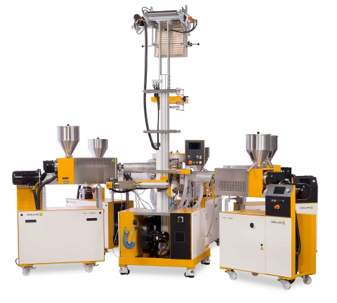 这些机器的特点是设计紧凑,灵活性高。生产线的速度是这样设计的,生产中的结论可以用最少的材料用量和劳动力利用率得出。此外,这些生产线非常适合生产人员的培训。通过额外的测试设备,如在线流变仪或光学薄膜控制,Collin吹膜生产线-顺便说一下,所有其他生产线-可用于原材料生产中的连续质量控制。目前共挤出多达9层和使用旋转棒系统是可能的。当然,我们还提供用于加工高温聚合物(如PEEK或PPSU)的淬火模块或组件。